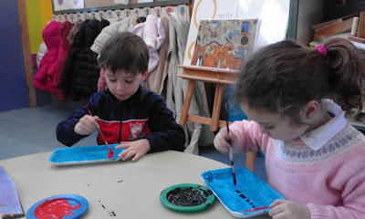 Hemos traído de casa los cartoncitos del rollo de papel higiénico y el del papel de cocina,y,,,¡a pintar!